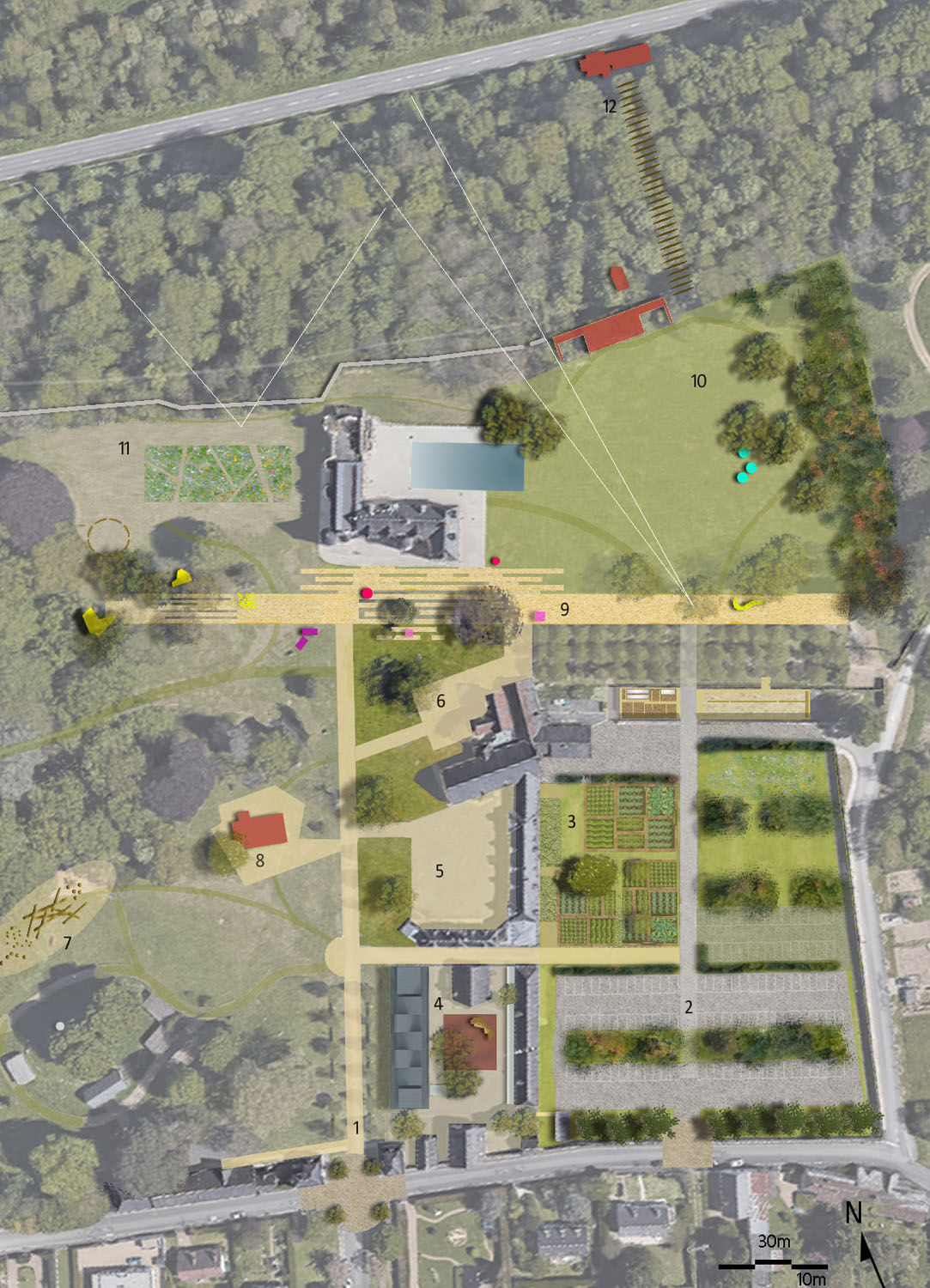Projet : Restructuration et réhabilitation de 12 bâtiments dépendants du domaine du château de Cangé et construction d'un nouveau bâtiment ainsi que la remise en valeur paysagère du parc.. Lieu : Domaine de Cangé, Saint-Avertin, Indre-et-Loire Maîtrise d’ouvrage : Ville de Saint-Avertin