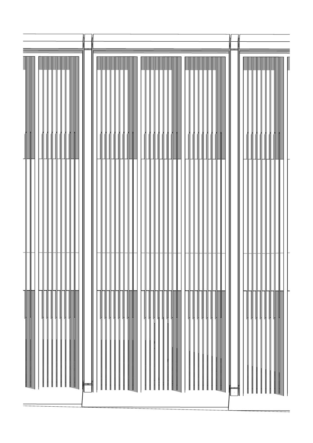 Profondeur et transparence Le travail en profondeur du projet, lié à la succession des vaisseaux, privilégie la transparence horizontale, la perception des plans successifs de la façade nord vers le jardin. La lumière naturelle est ainsi contrôlée et maîtrisée en profondeur : le premier vaisseau orienté au nord bénéficie d'une lumière régulière directe mais surtout diffuse, le vaisseau d'exposition dispose d'une lumière naturelle plus faible, car plus éloignée de l'extérieur, permettant une scénographie lumière efficace même en dehors des ilots thématiques. Le vaisseau arrière formant galerie couverte comporte un brise soleil qui filtre la lumière naturelle du sud vers l'espace d'exposition. A partir de la trame primaire des poteaux formant portiques, en façade mais aussi en profondeur, s'opère un jeu de remplissages aux trames successives de plus en plus serrées. La lumière naturelle devient le jeu d'interférences provoquées par son passage à travers ces lamelles de bois, comme autant de filtres ou de fanons. L'enveloppe extérieure du bâtiment joue donc avec cette idée de filtre, de trame plus ou mois lâche, plus ou moins serrée en fonction de la localisation, de la fonction ou de la composition générale.