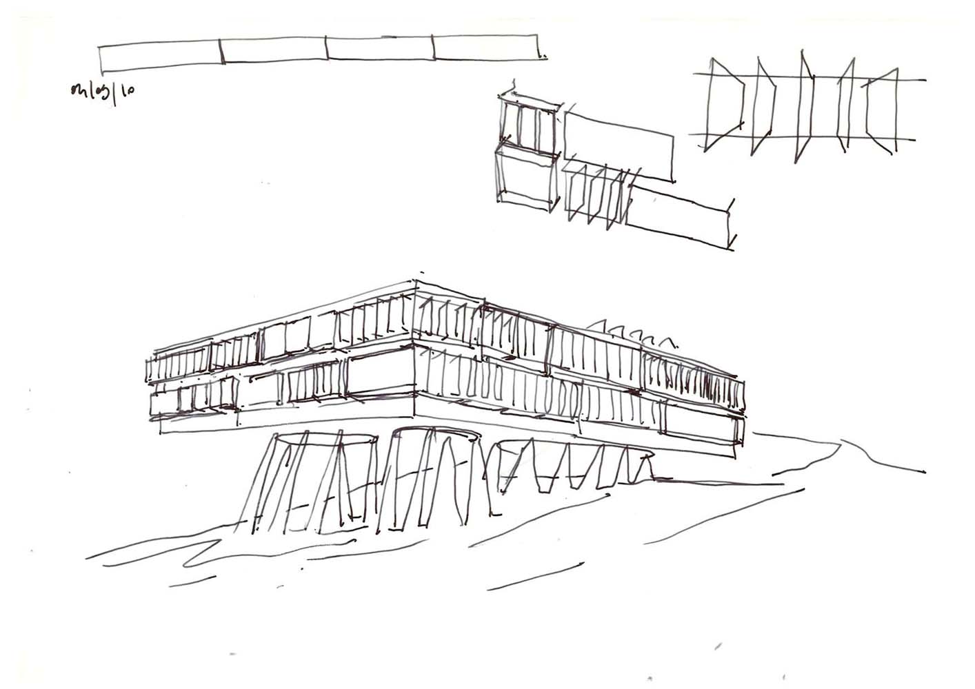 Un vaisseau suspendu Situé aux franges de la ville, dans un tissu lâche et hétérogène, le vaisseau domine le site et offre ses façades animées et changeantes.