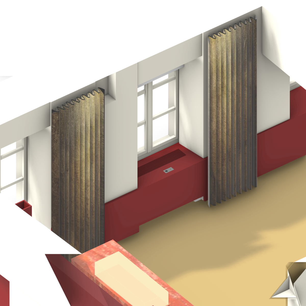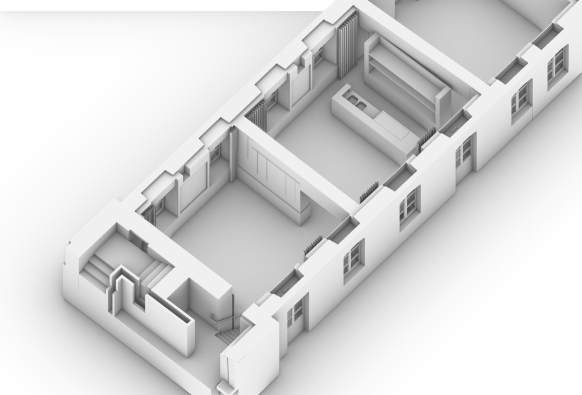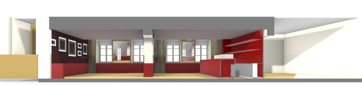 | La faible largeur du bâtiment induit une distribution des espaces par les salles commandées les unes les autres. Le principe d’un couloir latéral ne semble pas être une disposition d’origine et le programme des Maîtres du Rêve oriente également dans cette direction d’espaces uniques et traversants. C’est donc le choix que nous avons fait, évitant ainsi de « perdre » de la surface utile en couloirs de distribution. |
